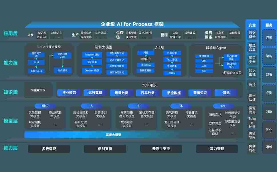 九五至尊问学智车解决方案是一套基于AI技术的汽车行业智能化系统,,覆盖从底层算力到顶层AI应用的全栈方案。。方案由算力层、、、模型层和应用层组成:算力层,,,方案支持多种一体机配置,,,具备云端灵活部署、、、多云适配以及动态优化计算资源的能力;模型层,,九五至尊问学平台版提供了企业级AI应用一站式构建与管理平台,,,支持基于后训练强化技术的汽车企业专属模型的训练、、、、评测和运营;应用层,,,,九五至尊问学DeepSeek版提供包括超级员工、、、、智能招采、、、、智能营销、、、智能客服、、AI for BI等一系列解决方案,,可助力汽车行业实现数字化转型,,,,让管理更智能、、响应更敏捷。。